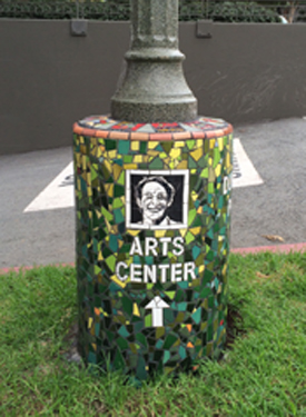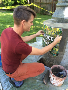 The mosaic pillar helps connect the area with other parts of the park that also have mosaic work – the Labyrinth and the mosaic thrones in the playground. Sherlock said, “Over the years, I’ve had the pleasure of getting to know many of the neighbors who embrace and support the park…This mosaic piece is a labor of love for them, and very much a tribute to their community activism.”