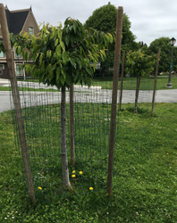 The two flowering cherry trees that were planted next to the basketball court three years ago are doing well and we can expect to see vibrant pink blooms on them each spring. They replaced two dying trees that were removed during Youth Play Area construction.