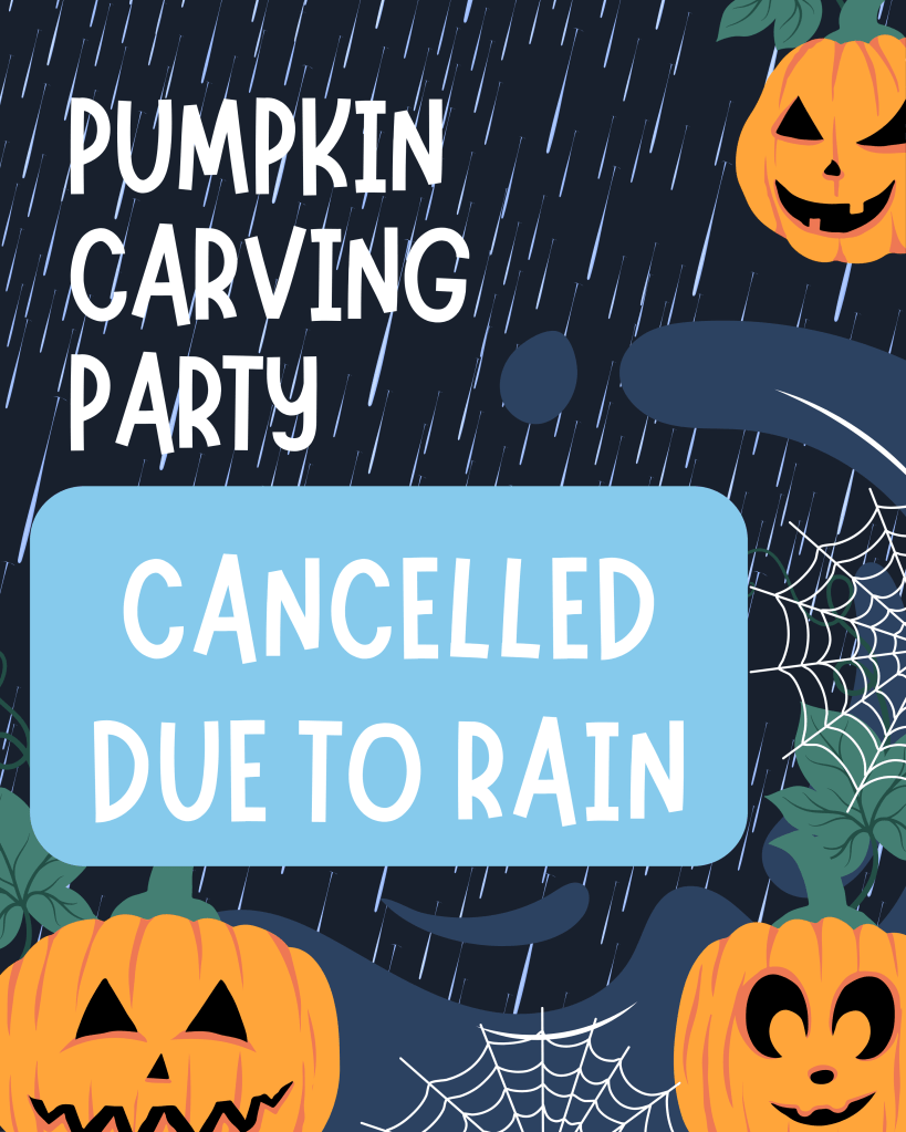 ‼️Due to rain in the forecast, the pumpkin carving party has been cancelled ☔️