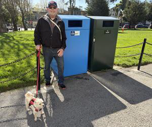 Two new ADA-compliant garbage can receptacle covers were installed on February 9 near the Potomac Street entrance, and two more were recently installed near the Steiner Street entrance to replace the existing plastic garbage cans. The old plastic bins are housed inside the new covers so Recology can remove and empty them.