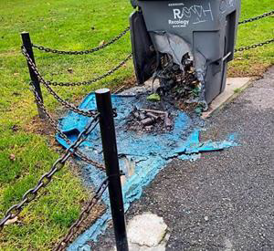 Vandals set the blue recycling bin near Steiner Street on fire on December 13. The blaze was extinguished quickly, and Rec & Park installed replacement bins to replace the destroyed blue and black bins.