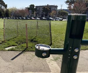 Two new ADA-compliant garbage can receptacle covers were installed on February 9 near the Potomac Street entrance, and two more were recently installed near the Steiner Street entrance to replace the existing plastic garbage cans. The old plastic bins are housed inside the new covers so Recology can remove and empty them.
